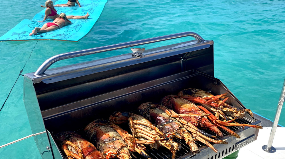 We serve a delicious hot BBQ lunch onboard, which gets prepared while you swim or snorkel in Caribbean waters.