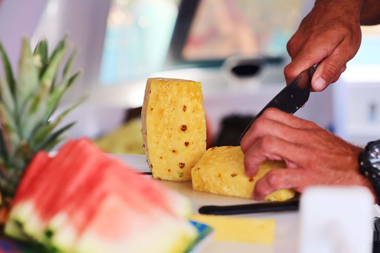 Our 54-foot Powercat cuts through the seas and gives you a smooth, comfortable, and dry ride every time.
