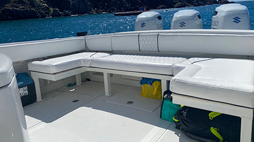 Fast, nimble, and built for those who want a more intimate experience on the water. Ricochet is our 38-foot center console — the perfect choice for smaller groups who want the full Boomerang experience without the crowd.